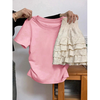 RUICHI-Camiseta de manga corta ajustada con cuello redondo y estilo francés para mujer, Camiseta corta recortada de verano adelgazante para chica caliente