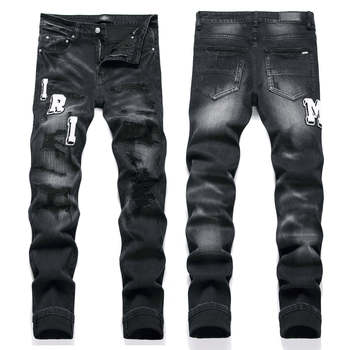 Ruichi quần nam co giãn denim quần nam xuyên biên giới mùa thu Đen bó sát quần bó sát Quần jeans nam