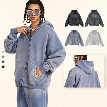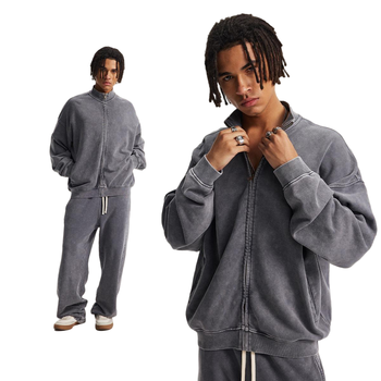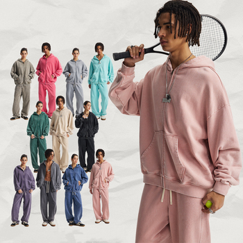 Ruichi Tùy Chỉnh Mùa Thu Mùa Đông 430gsm Ykk Dây Kéo Bông Pháp Terry Hoodie Set-Đôi Chải Cổ Điển Rửa Unisex Sweatsuit