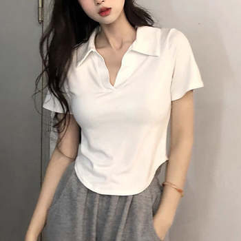 Ruichi áo hở eo cổ Polo Nữ Áo thun viền bất đối xứng gợi cảm vừa vặn mùa hè Áo Thun hợp thời trang cơ bản co giãn Phong Cách Hot ngọt ngào Y2K