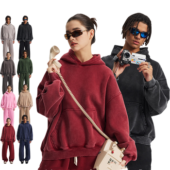 Ruichi mùa thu mùa đông cắt Boxy 370gsm lông cừu tuyết rửa hoodie Set-đau khổ rửa sạch Áo thun với quần dạo phố trang phục